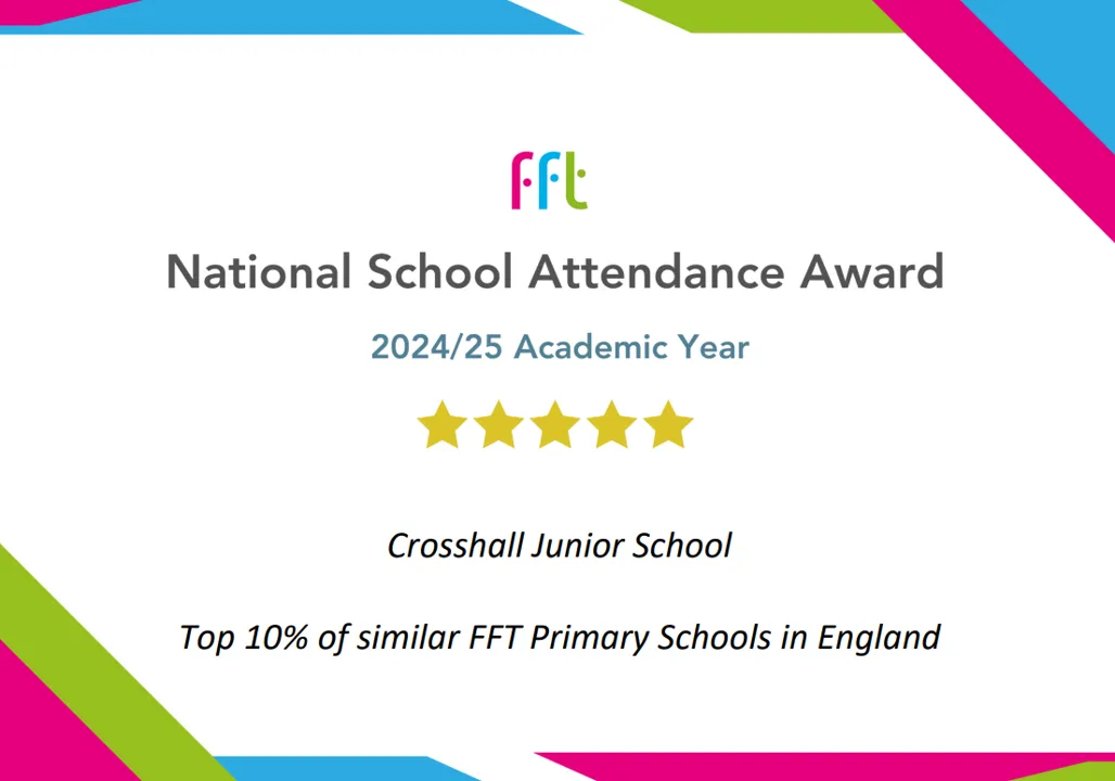 Crosshall Junior School has won FFT National Attendance Awards for 2025/2026 school year Autumn Term!